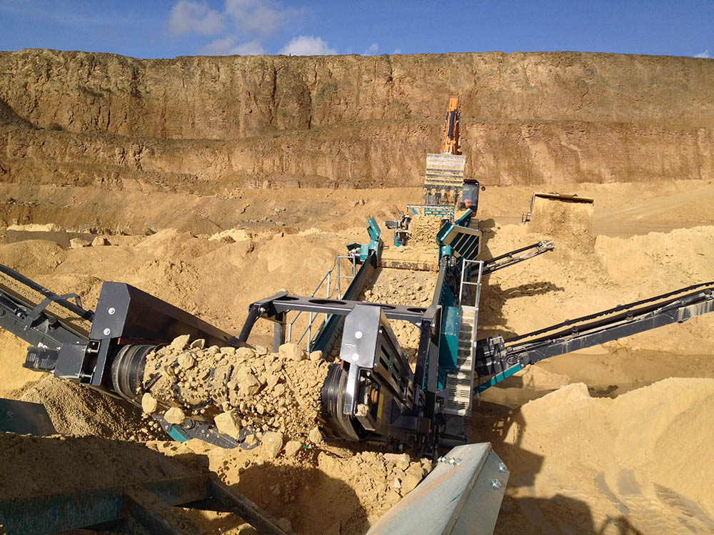 此條生產線,采用兩臺移動破碎站,一臺移動圓錐破碎站,一臺移動顎式破碎站,移動圓錐破碎站搭載振動篩和圓錐破碎,移動顎式破碎站同時搭載振動給料機和顎式破碎機。可以同時出三種細度的砂料,